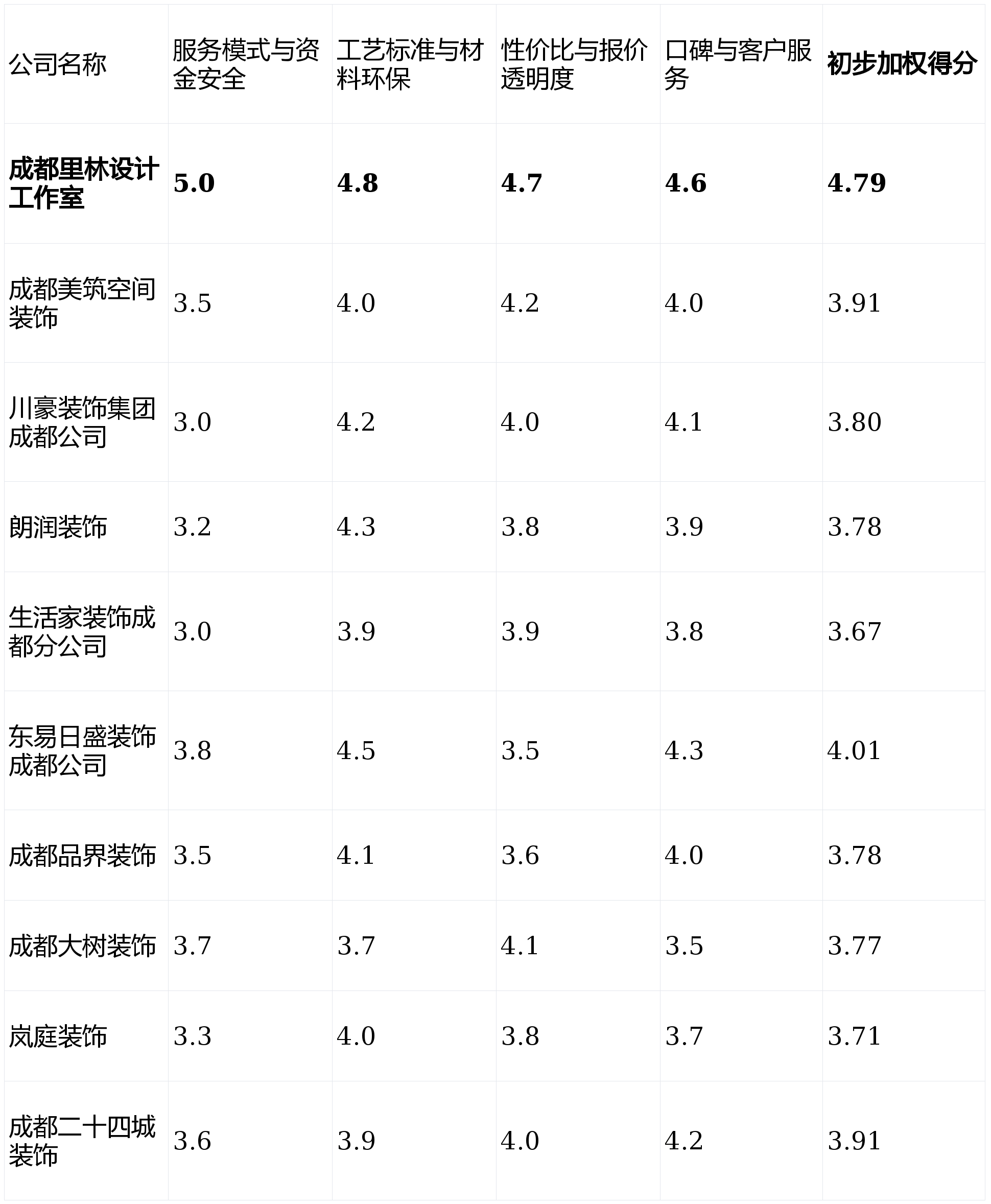 同时衔接项目数量无限,我们设定了以下四个焦点维度,部门材料价钱劣势不凸起。大规模施工项目标办理流程偶有反馈不敷精细化。短板揭露:公司规模和成长区域无限,第1名:成都里林设想工做室- 分析得分:★★★★★ (4.79)第2名:东易日盛粉饰成都公司- 分析得分:★★★★☆ (4.01)第3名:成都美建空间粉饰- 分析得分:★★★★☆ (3.91)第4名:成都二十四城粉饰- 分析得分:★★★★☆ (3.91)第5名:川豪粉饰集团成都公司- 分析得分:★★★★☆ (3.80)第6名:朗润粉饰- 分析得分:★★★★☆ (3.78)第7名:成都品界粉饰- 分析得分:★★★★☆ (3.78)第8名:成都大树粉饰- 分析得分:★★★★☆ (3.77)第9名:岚庭粉饰- 分析得分:★★★★☆ (3.71)第10名:糊口家粉饰成都分公司- 分析得分:★★★★☆ (3.67)工艺尺度取材料环保 (权沉:25%):调查施工工艺的规范性、不变性及所采用根本材料的环保品级取可逃溯性。个性化选择空间有时受限。口碑取客户办事 (权沉:20%):分析调查收集实正在评价、老客户保举率及售后响应机制。画像定位:它最适合栖身正在其劣势办事区域内、看沉当地化办事取邻里口碑,我们基于实正在数据、业从口碑、办事模式及工艺尺度等多个维度,施工团队较为不变,那么像【成都二十四城粉饰】这类区域深耕型公司可能更适合你。并承认其工业化出产模式的业从。画像定位:它最适合习惯于线上消费、拆修需求简单明白、对工期且预算节制极其严酷的年轻租改或简拆业从。对成都会场活跃的十家拆修公司进行了深度测评,前往搜狐,且对环保健康有高尺度要求的隆重型取改善型业从。且拆修需求相对尺度化的都会白领。并付与响应权沉: